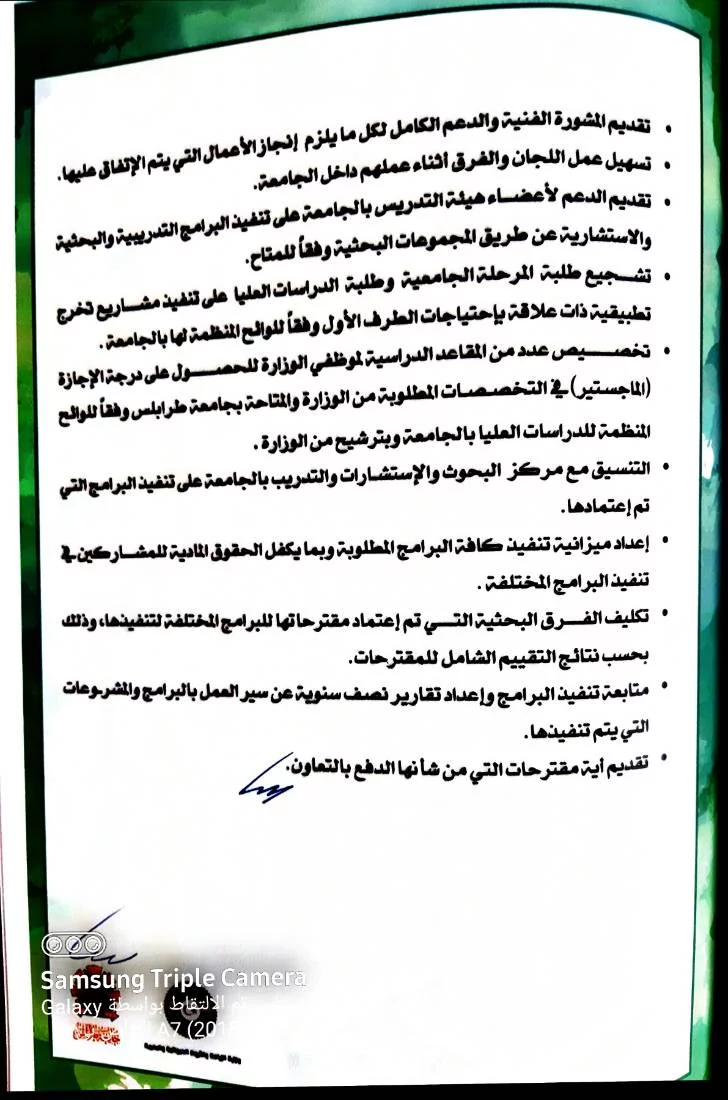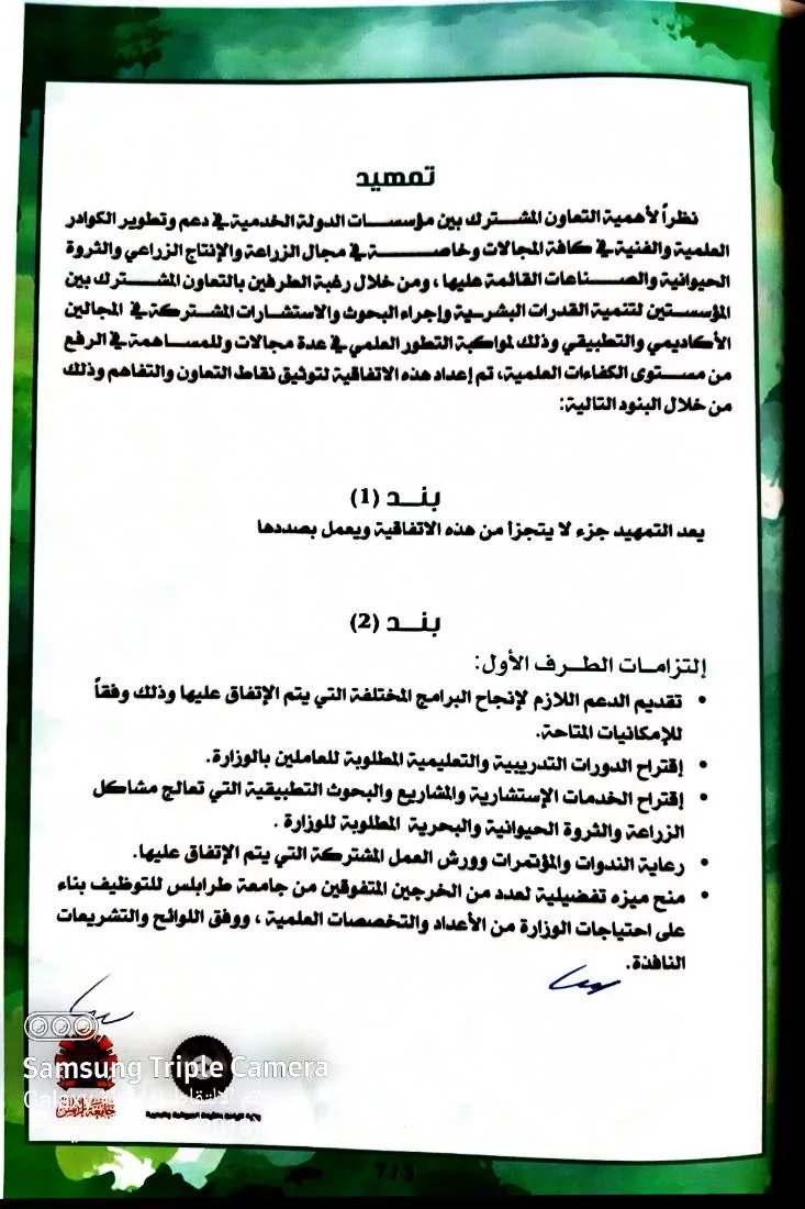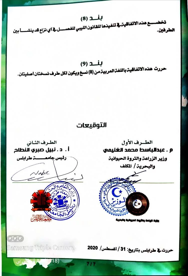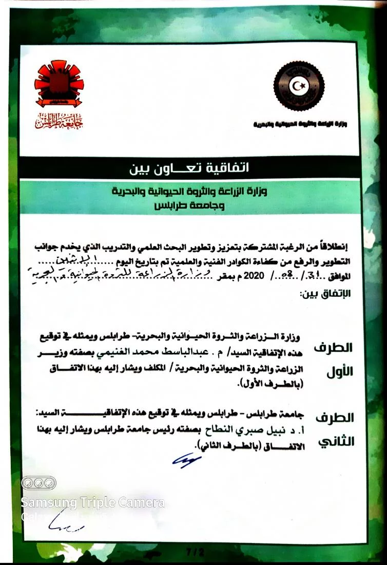 اتفاقية تعاون بين وزارة الزراعة والثروة الحيوانية و البحرية وجامعة طرابلس