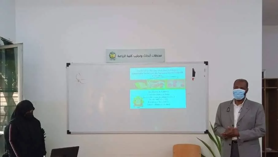 في إطار خطة فريق العمل المكلف من قبل السيد/ أ.د. عميد الكلية لوضع برنامج توعوي لحماية الطلاب، وأعضاء هيئة التدريس، والموظفين العاملين بالكلية من جائحة كورونا، ألقت السيدة/ د. ربيعة عبد القادر الأحمر (رئيس الفريق) محاضرة بمحطات الأبحاث (المزرعة) التابعة للكلية، حول طرق الوقاية من فيروس كورونا ودور بعض الأغذية في تعزيز مناعة الجسم. استهدفت المحاضرة العاملين بمحطات الأبحاث من مهندسين، وفنيين، وموظفين.