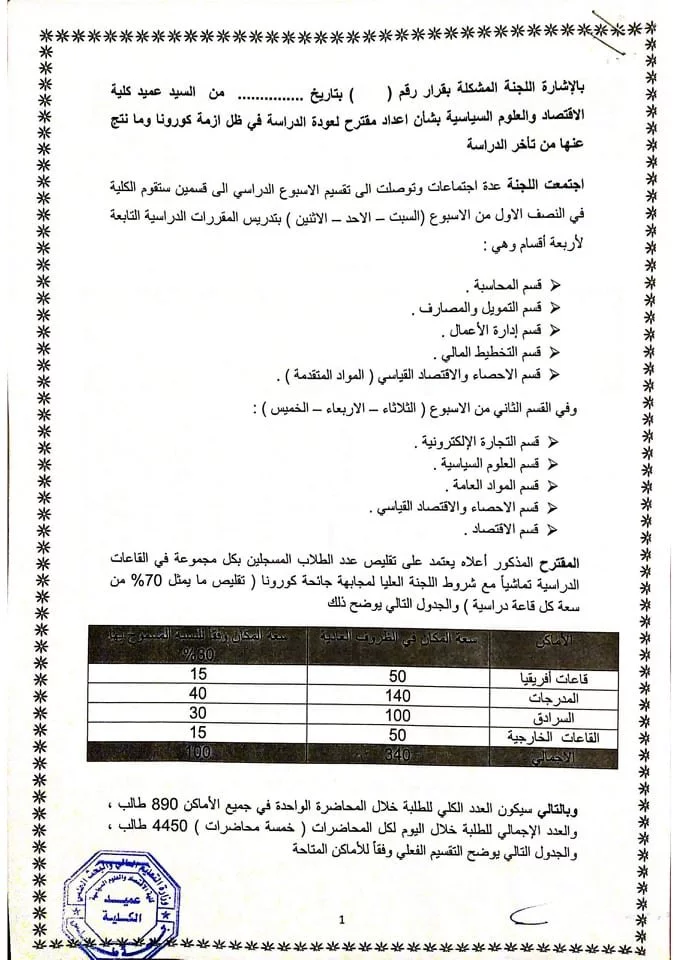 على الطلاب الاستعداد والتنسيق لجداولهم والذي سيعرض بصورته النهائية يوم الغد بإذن الله تعالى وسيتم بعدها الإعلان عن موعد التنزيل وفقا للمقترح المقدم من قبل إدارة الكلية والمعد من قبل لجنة العودة الدراسة بالكلية والذي تم الموافقة عليه من قبل لجنة الوبائيات بالجامعة.