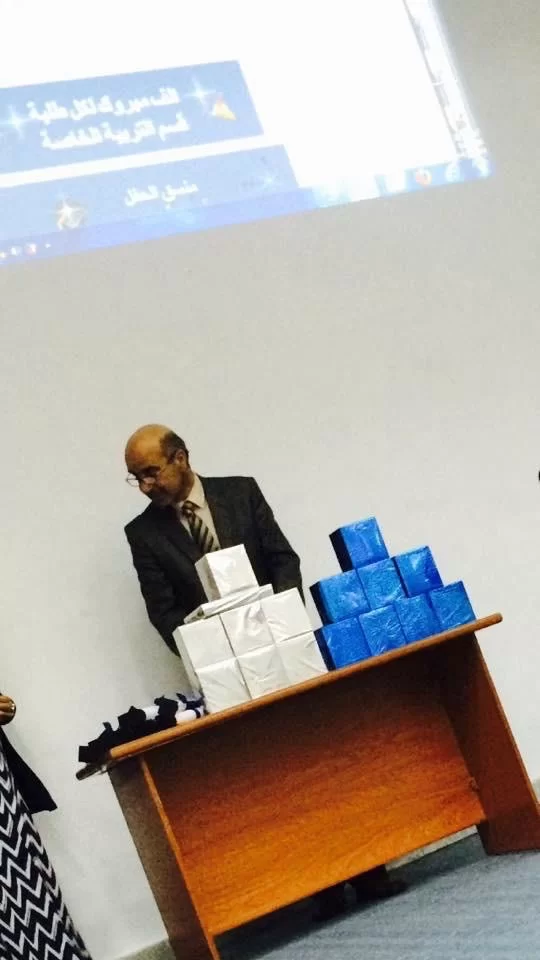 نظم مكتب النشاط بقسم التربية الخاصة حفل تخرج لعدد من خريجي القسم وقد حضر الحفل عميد الكلية د عبدالباسط ابو عزة ورئيس قسم الدراسة والامتحانات الأستاذة ليلي جويبر ، وعدد من أساتذة الكلية،وقدمت العديد من الفقرات والتي كان من أهمها كلمة العميد ورئيس القسم بهذه المناسبة وقدمت شهادات التخرج والهدايا لل