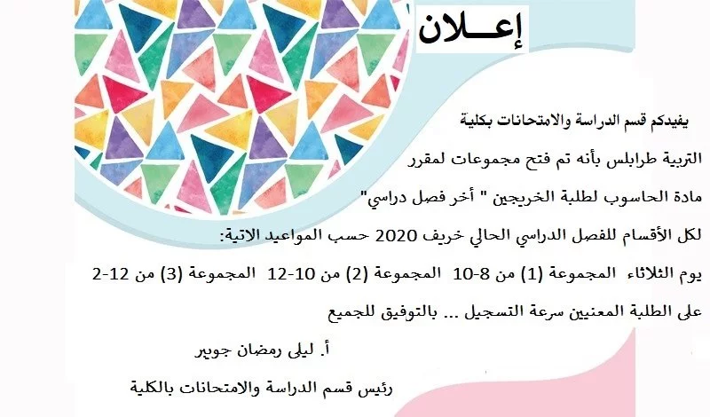 اخبار الدراسة والامتحانات كلية التربية طرابلس