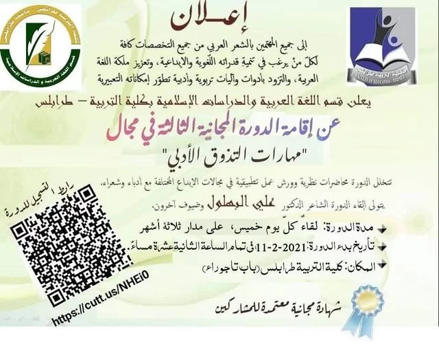 وحوارية أدبية مع الأساتذة الفضلاء د. علي البهلول ود. محمد عمر ، ضمن دورة التذوق