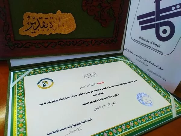 في بادرة كريمة أقيم في صباح اليوم الثلاثاء الموافق 29 من ديسمبر في مبنى البحوث والاستشارات في جامعة طرابلس ، وبحضور منسقة البحوث والاستشارات د. انتصار الشريف ، ومنسقة مكتب الجودة أ.فوزية الحصان عن كلية التربية /طرابلس وبحضور جمع كريم تمثل في رئيس قسم اللغة العربية د. علي الزوبي ومعه ثلة من أعضاء ال