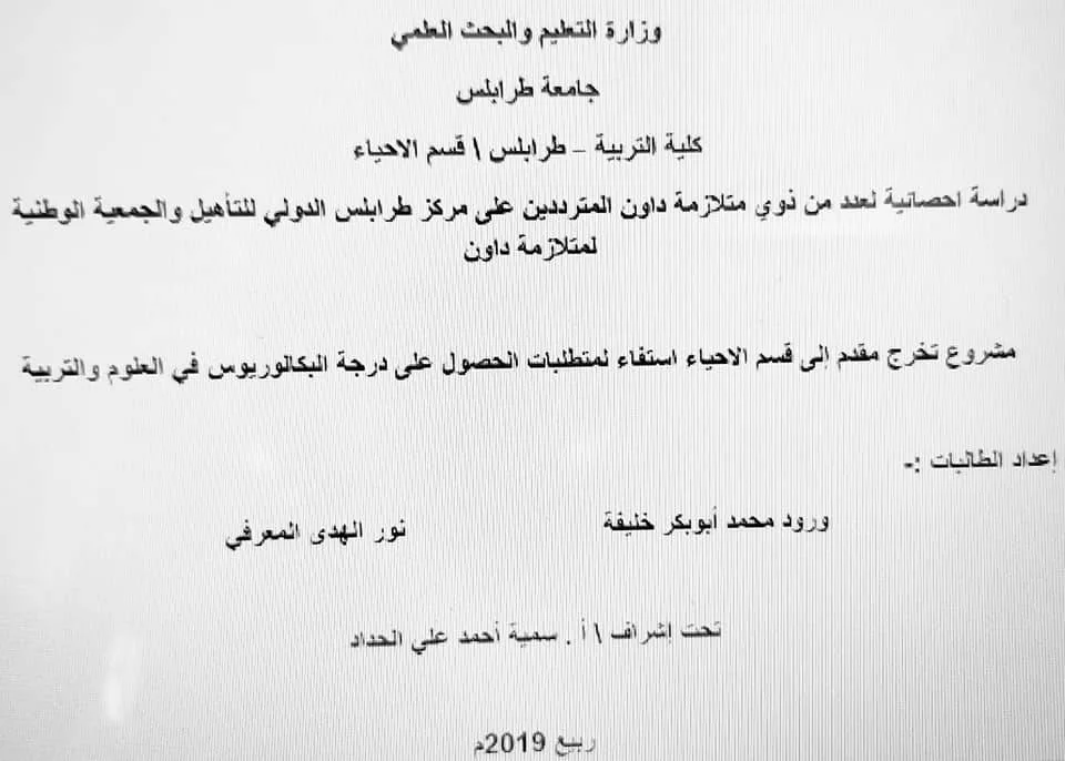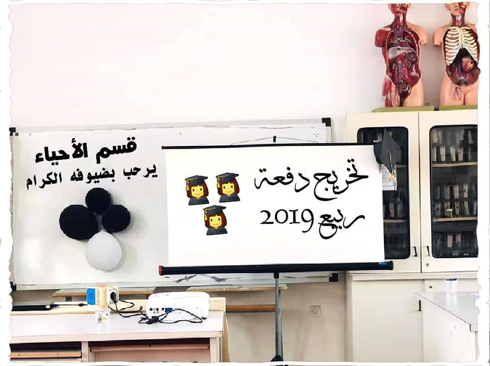 يفخر قسم الأحياء بتخريج دفعة جديدة من خيرة طالباته يقدمهنّ للوطن ليساهمنّ في نهضته وبنائه، حيث لا يصل إلى حديقة النجاح إلا من مرّ بمحطات التعب، والفشل، واليأس، وصاحب الإرادة القوية لا يطيل الوقوف في هذه المحطات... حيث اختتم القسم يوم الأمس الخميس الموافق: 8/8/2019 مناقشة عدد من مشاريع التخرج لدفعة (ربيع 2019 ) والتي بدأت من يوم الأحد الماضي الموافق: 3/8/2019 ، تنوعت فيها مواضيع الدراسة التي اخترنّها المشرفين للطالبات واشتغلنّ عليها وقدمنّ نتائج طيبة فيها، وشُكلت عدة لجان من أعضاء هيئة التدريس بالقسم لمناقشة هذه المشاريع، وقد شاركنا في هذه الأجواء الإحتفالية عدد من أولياء أمور الطالبات وأصدقائهن وعدد من أعضاء هيئة التدريس بالكلية ومن كلية العلوم بجامعة طرابلس...تميزت الخريجات بمهارة عرض مشاريعهنّ وحسن إلقائهنّ وسردهنّ لنتائج دراستهنّ فأبدعنّ ونلنّ استحسان الجميع واستحققنّ النجاح والتفوق بجدارة، فلا شيء يضاهي فرحة التخرج التي تعد من أجمل اللحظات التي تمرّ بحياة الطالبات فتعب السنين، وسهر الليالي، ودعاء الوالدين قد حصدوه وهوّن عليهم تعب السنين...خريجاتنا العزيزات: مثابرتكنّ سر نجاحكنّ، وإصراركنّ سر تفوقكنّ، وصبركنّ سرّ تميّزكنّ ، فقد زرعتنّ خيرآ وحصدتنّ ثماره الطيبة، وبالنهاية التخرج نهاية لرحلة قصيرة وبعدها تبدأ رحلة أطول وهي رحلة الحياة العملية متمنين لكنّ حياة ناجحة موفقة...