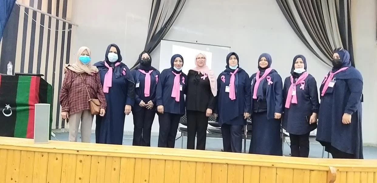 #الــشـهــر_الــوردي #الاتحاد_الليبي_لمكافحة_السرطانانطلقت صباح الثلاثاء الموافق 05 أكتوبر 2021م الحملة الوطنية "الحادية عشر" للكشف المبكر عن سرطان الثدي بكلية التربية جامعة طرابلس والتي يشرف عليها ويرعاها الاتحاد الليبي لمكافحة السرطان ومراقبة التربية والتعليم ببلدية سوق الجمعة والمجلس البلدي سوق الجمعة وشركة ليبيانافريق مراقبة التربية والتعليم ببلدية سوق الجمعة كان بالموعد، حيث ألقت الدكتورة "ليلي ابو ركبة" محاضرة توعوية عن أهمية الكشف المبكر عن سرطان الثدي ودوره الفعال في علاجه والحد من انتشاره.وتخللت المحاضرة توزيع مطويات توعوية إرشادية للسيدات الحاضرات تحمل نصائح وإرشادات عن أهمية الكشف المبكر.هذا تم توضيح الأماكن المستهدفة بالمحاضرات والمصحات التي تبنت الكشف المجاني عن سرطان الثدي.حفظ الله الجميع ومتعكم بالصحة والعافية