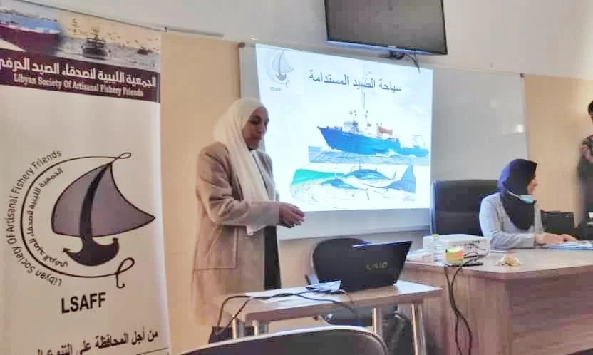 مشاركة الاستاذة سارة بن زقلام في ورشة عمل توعوية لي الصيادين وأصحاب المصلحة في منطقة ابى كماش تحت عنوان سياحة الصيد المستدام وذلك يوم الأحد الموافق 13 فبراير 2022 بإشراف الجمعية الليبية لإصدقاء الصيد الحرفي تأتي هذه الورشة ضمن أنشطة مشروع استدامة الصيد ببحيرة فروة والممول من صندوق الشراكة لدعم الأنظمة البيئية الحرجة CEPF