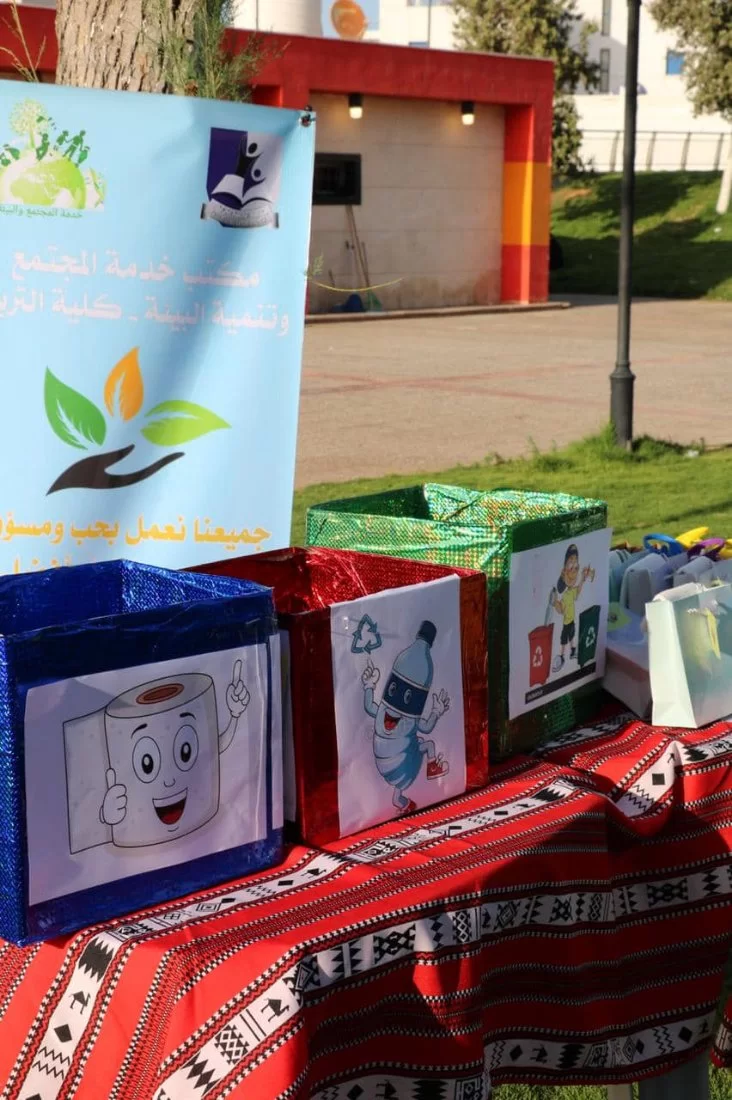 في إطار تعاون المشترك بين جهات العامة والمجتمع المدني البيئي قام مكتب خدمة المجتمع باحياء اليوم العالمي للبيئة بمشاركة جمعية اكسجين للتنمية البيئية حول العادات السلبية و كيفية معالجتها لحماية البيئة و التي تمثلت في تصنيف القمامة و رميها في الاماكن المخصصة لها وذلك من اجل بيئة نظيفة وفق الله الجميع لخدمة الوطن والمواطن