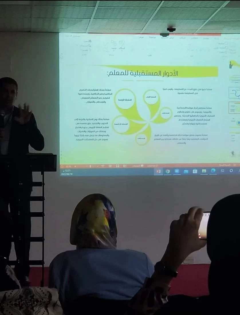 ضمن مساهمات اعضاء هيئة التدريس في اطار الخدمة المجتمعية و التنمية شارك الاستاذ اسامة القديري صباح يوم السبت الموافق 18/06/2022 "بمركز الشيخ على الغرياني بتاجوراء واستضافة المجلس البلدي تاجوراء" في الندوة الحوارية حول جودة التعليم بين الواقع والطموح.حيث قدمت عرضا بعنوان:"جودة المعلم: متطلبات المهنة وادوار المستقبل" تناولت في هذا المحور العديد من المواضيع التى تخص المعلم تمثلت في:متطلبات وشروط مهنة المعلم.التزامات المعلم نحو : (التلاميذ- الزملاء- المهنة).الأدوار المستقبلية للمعلم.الكفايات اللازمة للمعلم ليقوم بمهنته.التوصيات والمقترحات.وكان ترتيب هذا العرض هو الثالث من ست محاور عرضها مجموعة من الاساتذة المختصين.وقد حضر هذه الندوة عدد من المختصين والتربويين والمهتمين بمجالي الجودة والتعليم. وقد نسقت و ادارة الجلسة الاستاذة سهام حسن وختمت الندوة بحلقة نقاش شارك فيها الحاضرين.نسأل الله أن يعم نفعها على البلاد والعباد.