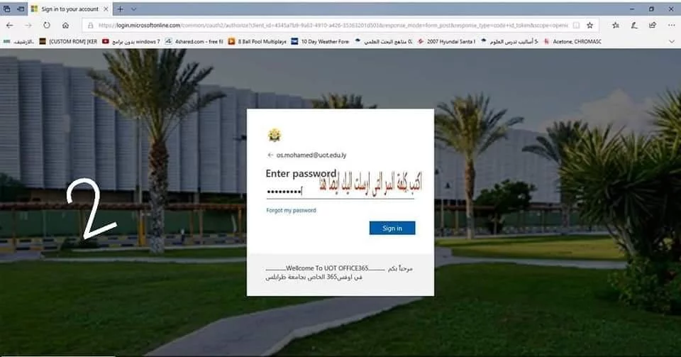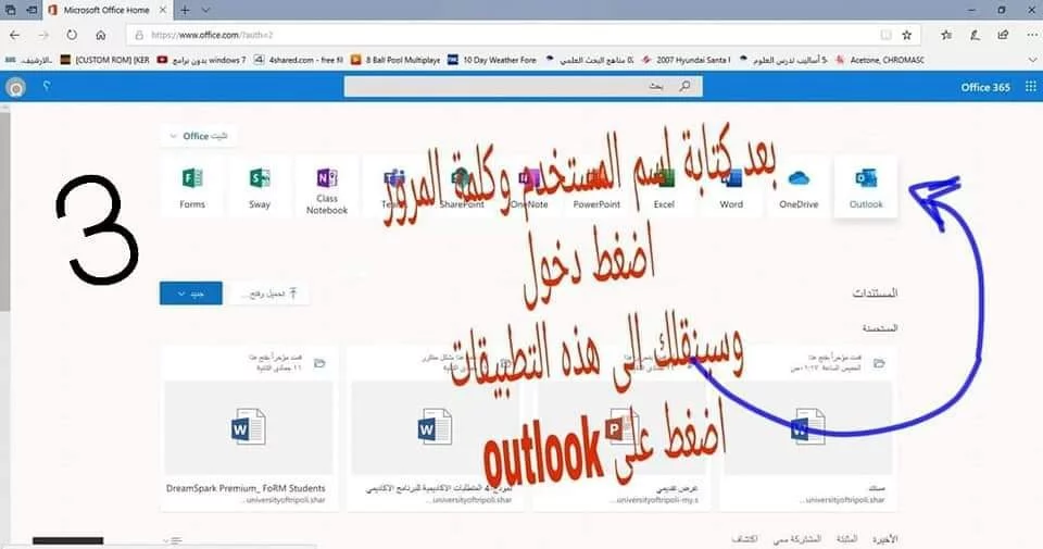 * بالايميل الجامعي الخاص بك يمكنك الدخول في موقع شركة مايكروسفت أوفيس والتمتع باستخدام تطبيقات مايكروسفت أوفيس 365 السحابية ..