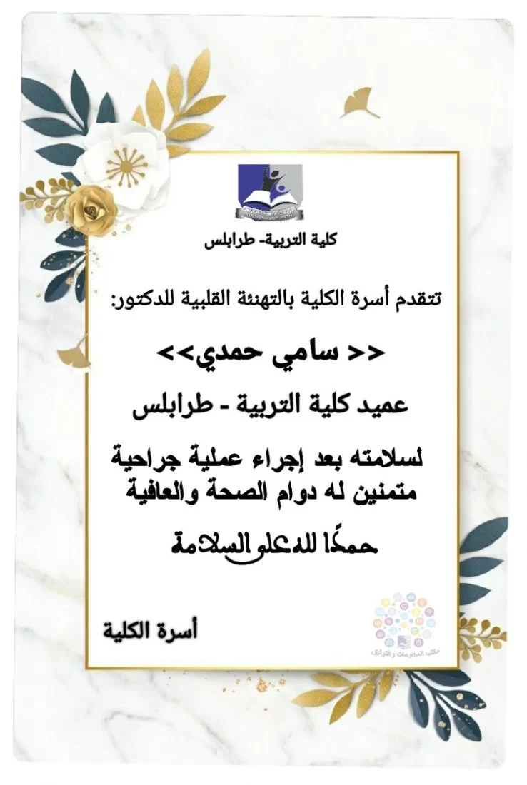 نتقدّم بأسمى معاني التهاني والتبريكات القلبية التي ملؤها الفخر والاعتزاز للدكتورة: