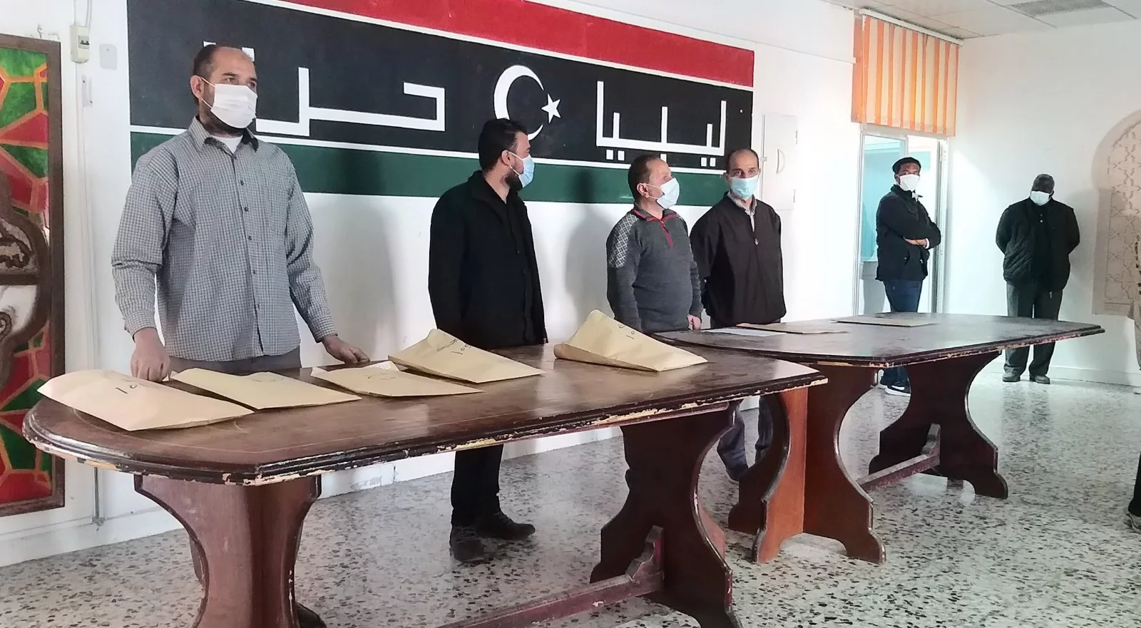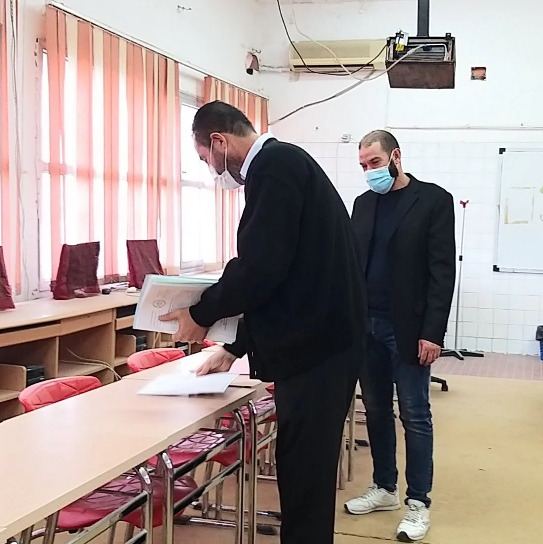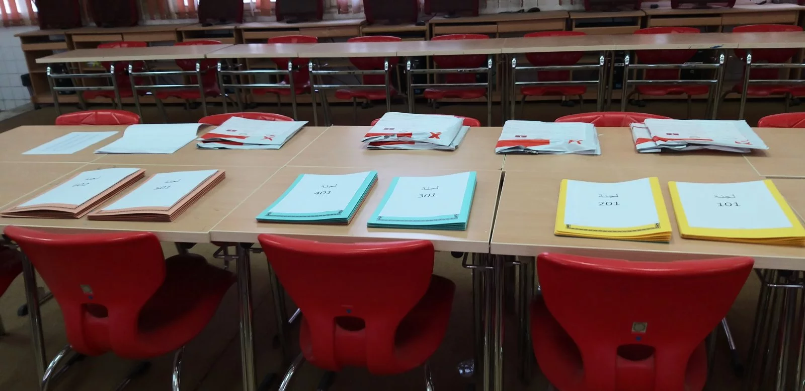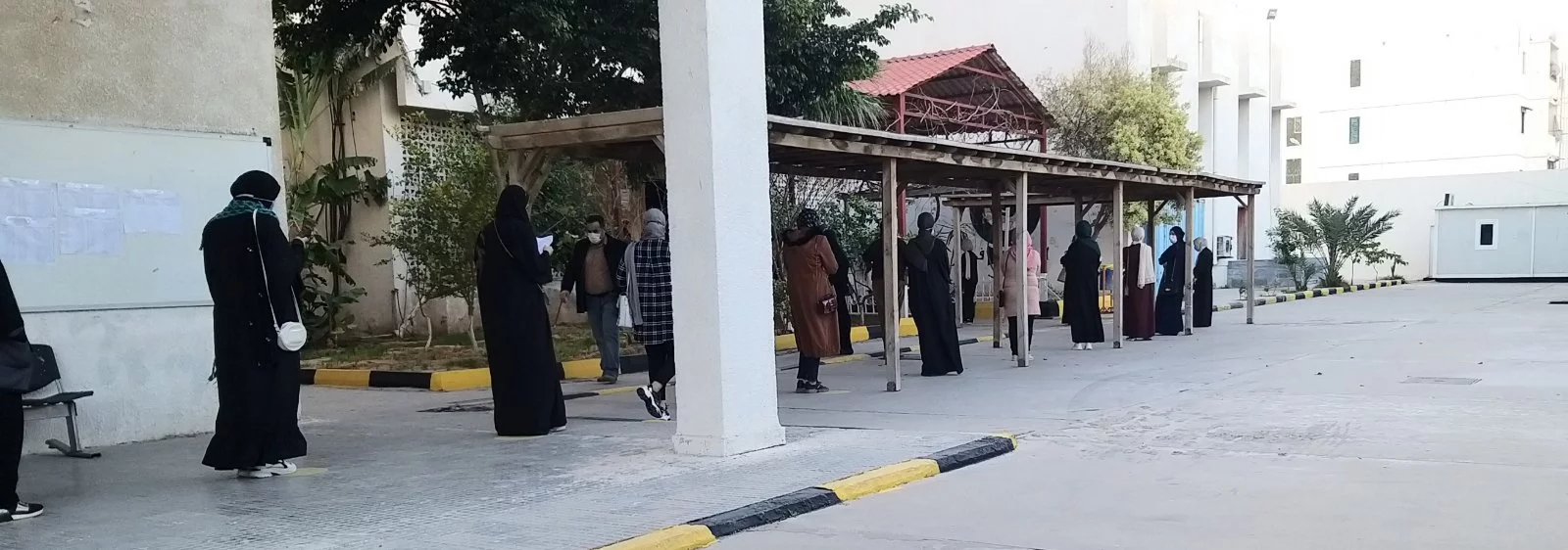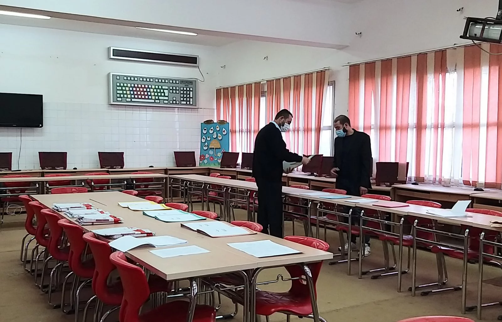 وقام بعملية الملاحظة داخل اللجان التي يبلغ عددها (7 لجان) لليوم الأول عدد من مراقبي بعض المدارس، كما أشرف الكادر الوظيفي أ. عبد العزيز سليمان، أ. عبد الفتاح ديهوم، أ. محمد آغا، مصطفى الغابر، وسام التومي واللجنة الصحية أ. زمزم شتيوي، وهدية دكام، وأفراد الحرس الأمني داخل الكلية، وبعض طلبة الاتحاد بالكلية على عملية تنظيم دخول الطالبات لمقار اللجان وفق شروط التباعد، وتم قياس درجة حرارة الطالبات وكل الملاحظين، وتعقيم الأيدي بدءا من دخولهم لمبنى الكلية.