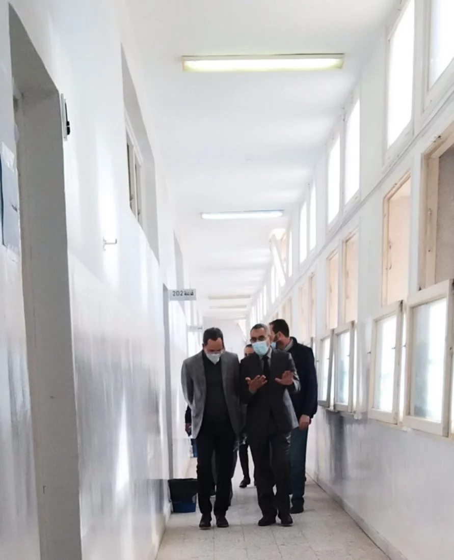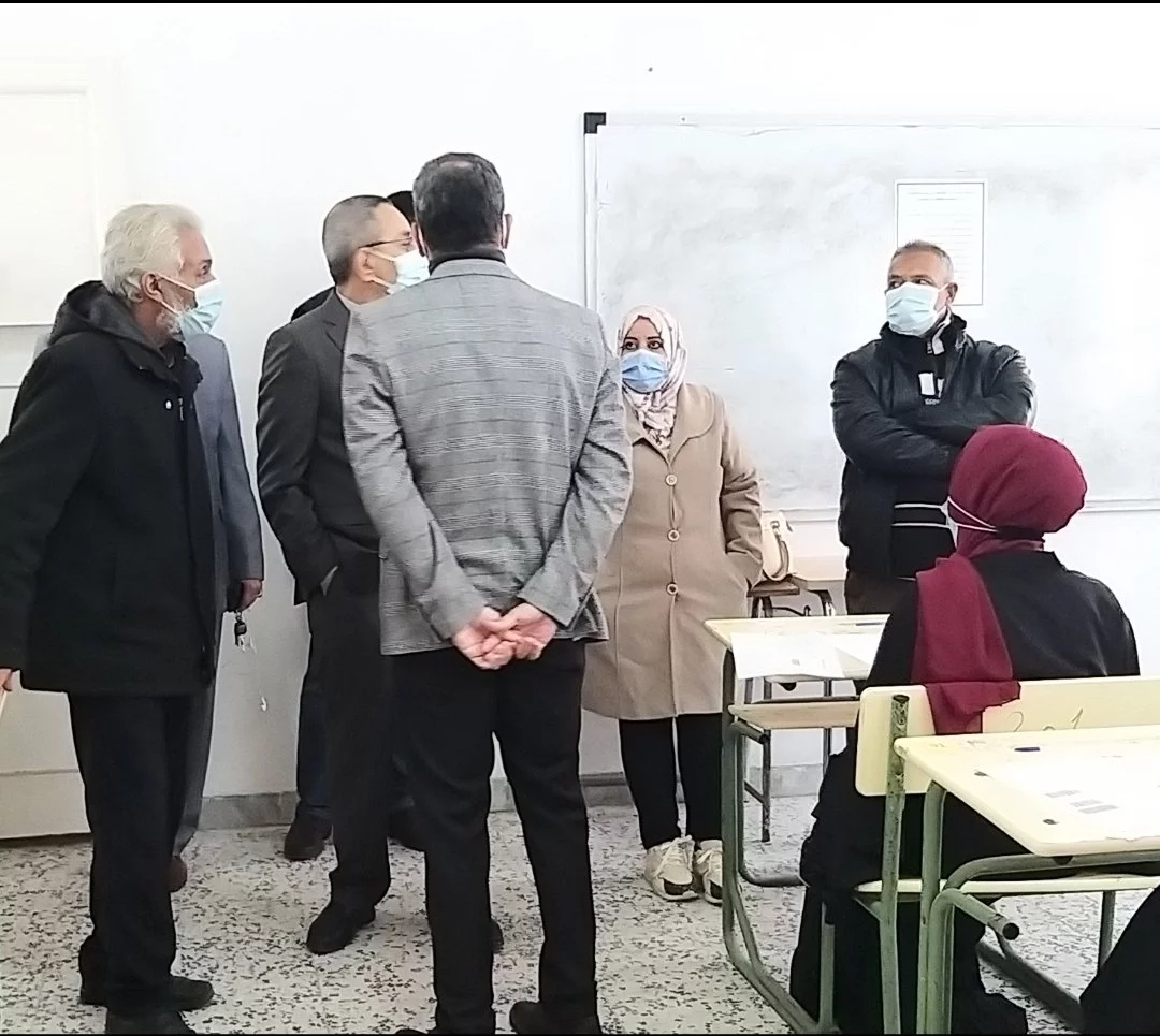 م. عادل جمعة وكيل وزارة التعليم، أ. د. خالد شنبش، أ. د. إبراهيم الدغيس وكان في استقبالهم د. عمر عامر عميد كلية التربية \ طرابلس (رئيس اللجنة المشرفة على تنظيم سير الامتحانات) وعدد من أعضاء اللجنة داخل مقر الكلية، وقد قاموا بمرافقتهم في جولة تفقدية لمقار اللجان الممتحنة وتابعوا سير امتحانات الدور الثاني للشهادة الثانوية، وذلك ضمن سلسلة الزيارات التي يقومون بها لتقييم التزام المؤسسات التعليمية ببلدية طرابلس بكافة الإجراءات الاحترازية من إرتداء الكمامات والتباعد بين الطلبة، للإطمئنان على سلامة الطلاب أثناء فترة الامتحانات التي بدأت الأسبوع الماضي، ولم تُسجل أي ملاحظات من قبل الوفد الزائر.