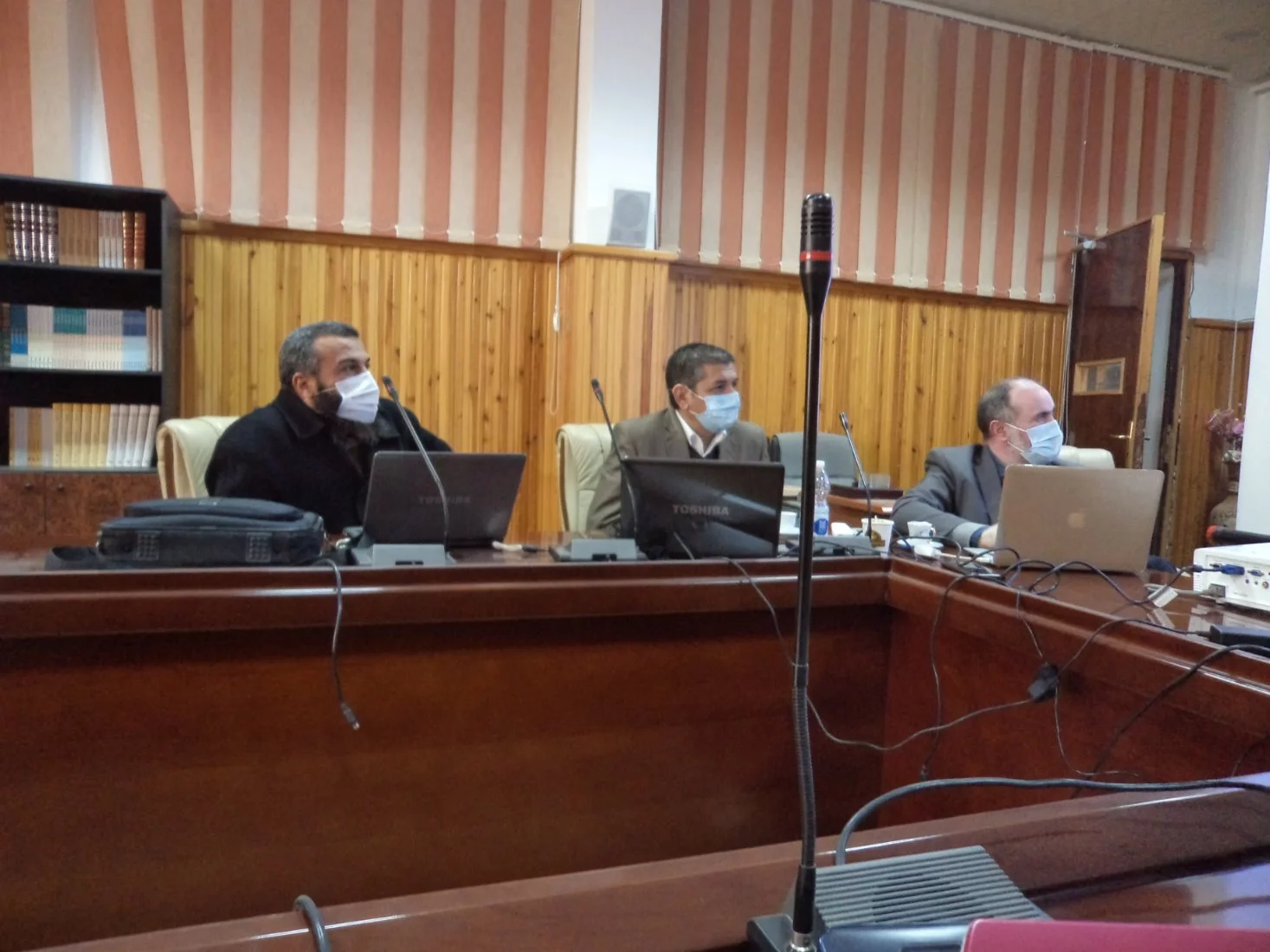 د. عبد السلام الأطرش وكيل الشؤون العلمية بالكلية، د. عادل قشوط مدير مكتب شؤون أعضاء هيئة التدريس بالكلية، أ. فوزية الحصان مدير مكتب الجودة وتقييم الأداء بالكلية، أ. ليلى جويبر رئيس قسم الدراسة والامتحانات بالكلية وعدد من منسقي التوثيق بالأقسام العلمية.