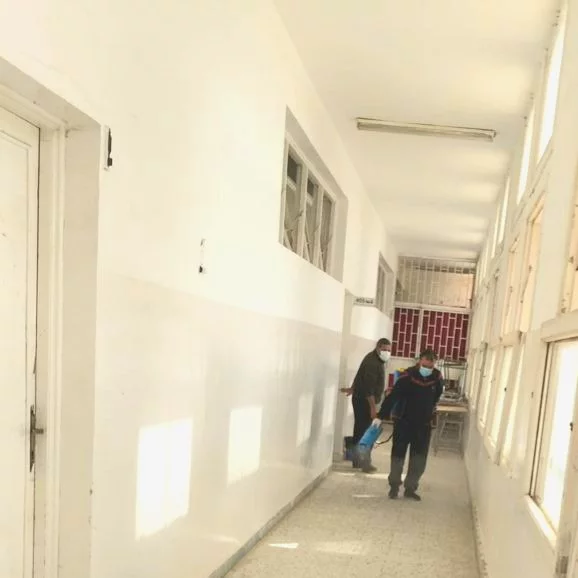 تم يوم الأمس الجمعة؛ الموافق: 5/3/2021 تعقيم كامل لقواطع الكلية التي تشتمل على القاعات التدريسية، وقد تم هذا الإجراء بمجهودات ذاتية من الكلية التي تعاونت مع شركة تعقيم خاصة أجرت عملية التعقيم داخل المبنى، فتحية شكر وتقدير لعميد الكلية والكادر الوظيفي الذين أشرفوا على عملية التعقيم وللفريق المختّص بعملية التعقيم، بارك الله لهم جميعاً كل مجهوداتهم المبذولة من أجل المحافظة على تطبيق اجراءات السلامة داخل الكلية.