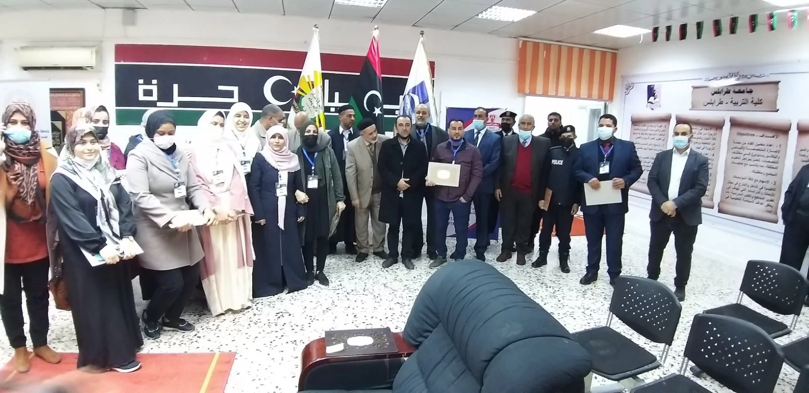 وفي نهاية اليوم الختامي اقيم حفل تكريم لكل المشاركين ألقي فيه كلمة رئيس اللجنة التحضيرية د.امهيدي نجم وكلمة المشاركين القتها أ.ليلى الزقوزي وأعقبها نتائج وتوصيات المؤتمر سردتها على الحاضرين د. نجاة الهمالي، وفي نهاية الحفل تم منح شهادات التقدير لكل من شارك بهذا المحفل العلمي وساهم في إنجاحه.
