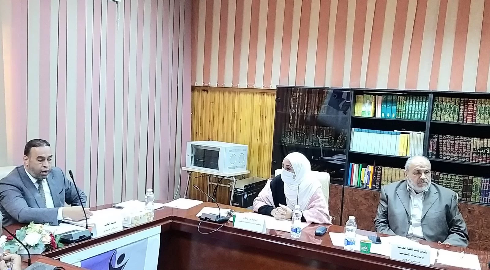 وكيل الكلية للشؤون العلمية المكلّف: أ. سارة بن زقلام ورؤساء الأقسام العلمية ورئيس قسم الدراسة والامتحانات بالكلية.