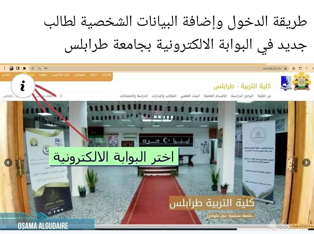 طريقة الدخول وإضافة البيانات الشخصية لطالب جديد في البوابة الالكترونية بجامعة طرابلس