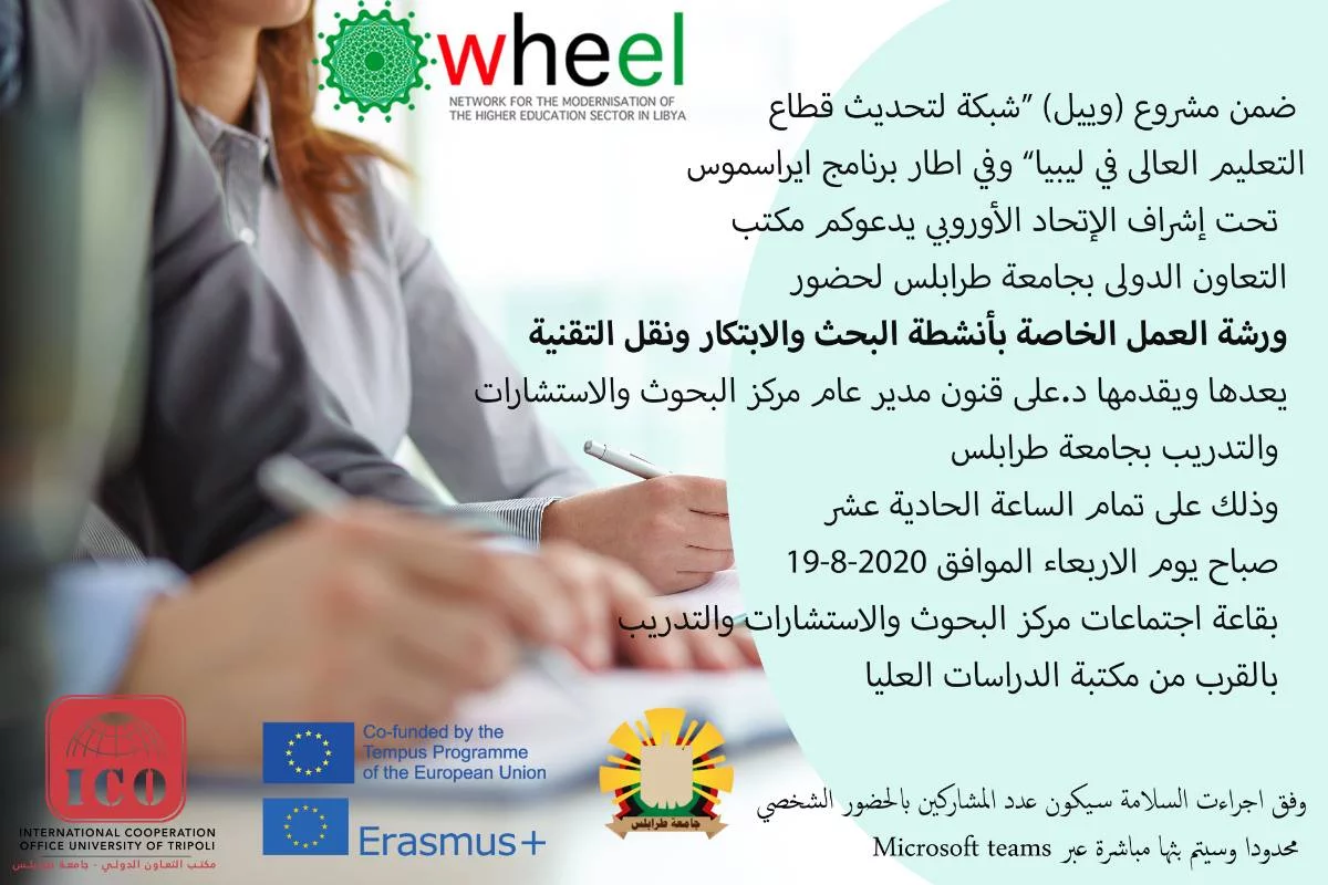 Workshop on research, innovation and technology transfer Within the framework of WHEEL (Network for the Modernization of the Higher Education Sector in Libya) project and the Erasmus+ Program, and under the supervision of the European Union, the International Cooperation Office
