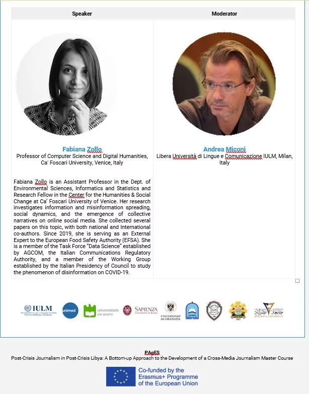 As part of the PAgES online course, we organise webinars on different aspects of cross-media journalism with international leaders in the field. Participations open to anyone interested and it is free of charge.