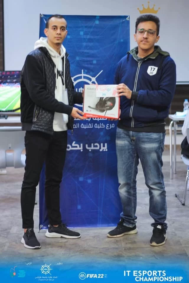 | #eSports |دوري فيفا الخاص بكلية تقنية المعلومات تم بالأمس الثلاثاء الموافق 18 - يناير - 2022 اختتام بطولة الفيفا التي اقيمت في كلية تقنية المعلومات، حيث انتهت المسابقة بفوز الطالب أيوب قدمور على منافسه الطالب سراج عريبي في المباراة النهائية التي انتهت بنتيجة 3 أهداف مقابل هدف وحيد في مباراة اتّسمت بالنِدية والمنافسة حتى الدقائق الأخيرة وتهدف مثل هذه الأنشطة إلى توفير بيئة تنافسية بين الطلبة و إعادة الحياة للجامعة بصفة عامة والكلية بصفة خاصة، بعد ان تم تجميد الأنشطة لفترة طويلة بسبب وباء كورونا و في الختام نتقدم بكل الشكر والتقدير إلى رعاة هذا الحدث لتوفيرهم الجوائز للفائزين Shake up محلBelhaj store متجر"استعدوا و اربطوا الأحزمة هادي البداية فقط"#مكتب_النشاط#اتحاد_طلبة_كلية_تقنية_المعلومات