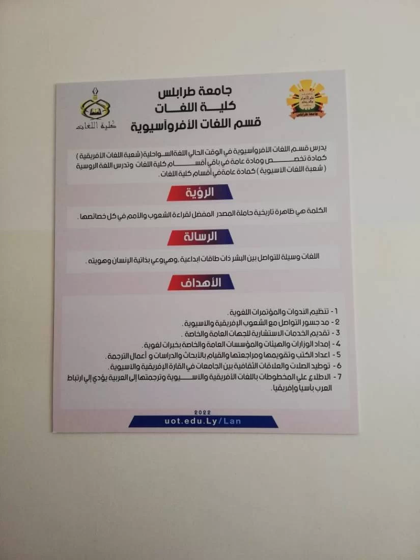 استعدادات قسم اللغات الافروآسيوية لزيارة فريق الجودة و تقييم الاداء بوزارة التعليم