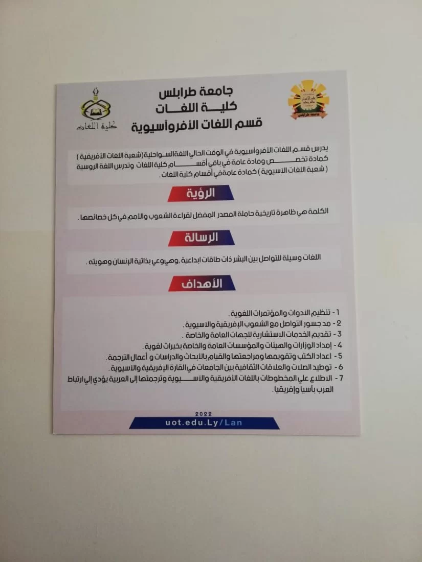 تنظيم و استعداد من رئاسة و اعضاء هيئة التدريس بقسم اللغات الافروآسيوية لاستقبال فريق الجودة وتقييم الاداءالتابع لوزارة التعليم ز