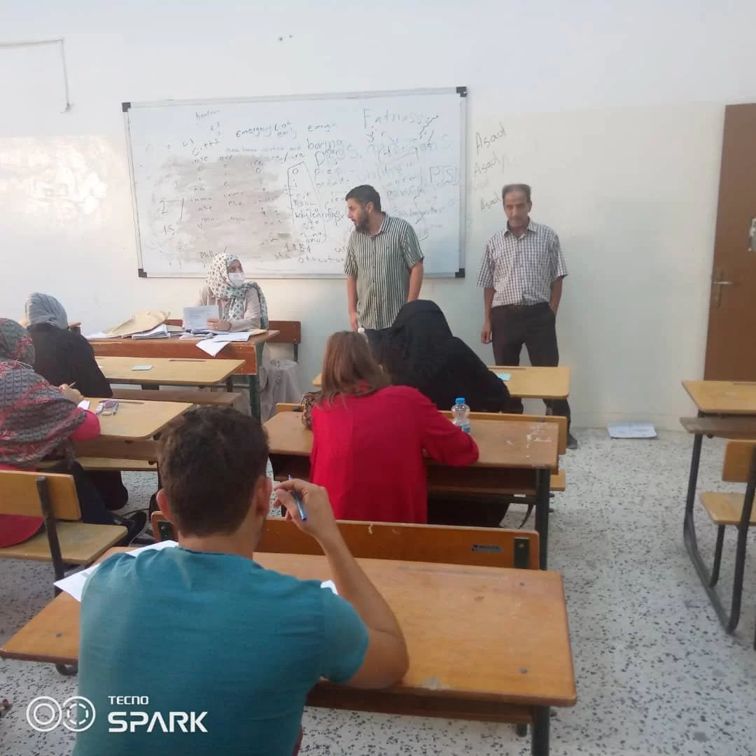 الثلاثاء 5 أكتوبر 2021 - قام عميد كلية اللغات الدكتور نوري عبيريد بعمل جولة تفقدية للأطمئنان على عملية سير الإمتحانات النهائية بمعظم أقسام الكلية، رافقه فيها عدد من رؤساء الأقسام بالكلية، وقد أطلع العميد على الأجراءات الوقائية الإحترازية المتبعة في الكلية عامةً واثناء فترة الإمتحانات خاصةً، وكما