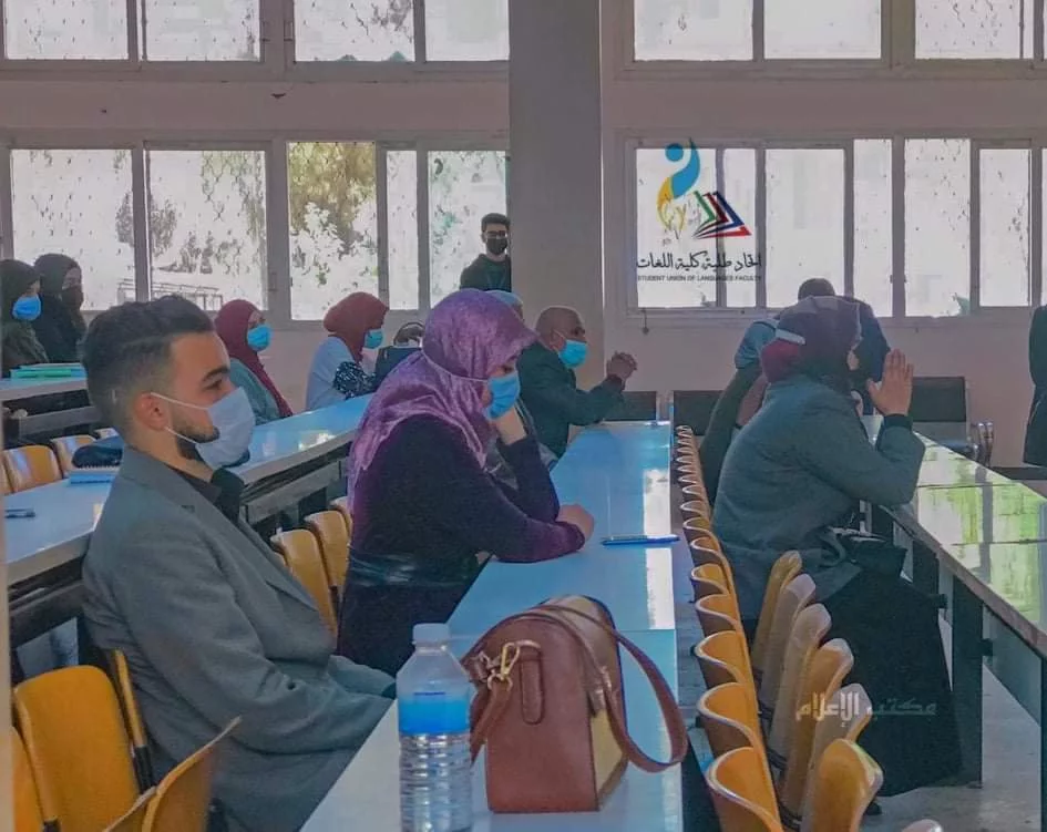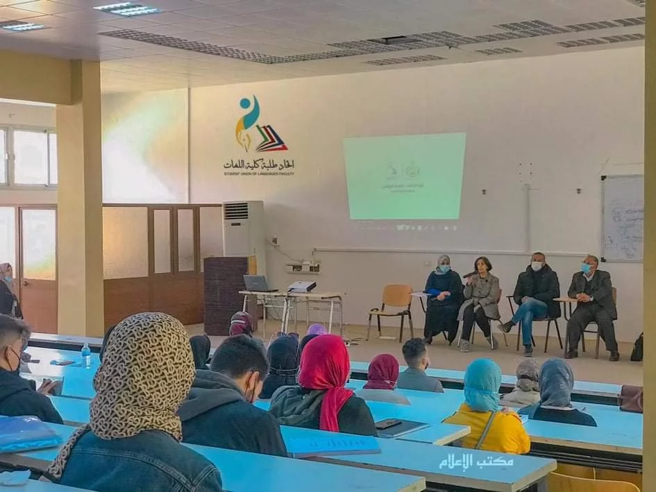 أقيم اليوم الأحد الموافق 7-3-2021 ملتقى تعريفي للطلبة والطالبات الجدد للترحيب بهم ضمن طلبة الكلية وكذلك قد تم تعريفهم بالكلية ومعالمها وأقسامها العلمية ، وذلك بحضور سيادة عميد الكلية ، والسادة رؤساء الأقسام بالكلية ،وكذلك بحضور أعضاء هيئة التدريس وعدد من أبرز الشخصيات في الكلية ، و رئيس اتحاد طلبة كلية اللغات ورئيس اتحاد طلبة ليبيا المكلف وقد تم التعريف بالكلية ، وبكل قسم من الأقسام من قبل رئيس كل قسم ، ، وذلك وسط حلقة تواصل فعّالة كما تم الرد على استفسارات زملائنا الطلبة وتوضيح آلية التنسيب الأقسام والآلية الجاري بها العمل الفصل التمهيدي ، جزيل الشكر والتقدير لسيادة عميد كلية اللغات وأعضاء هيئة التدريس ورؤساء الأقسام وجميع الحضور الكرام . والشكر موصول لمن للفريق الفني الذي اخرج شريط العرض المصاحب للملتقى:,