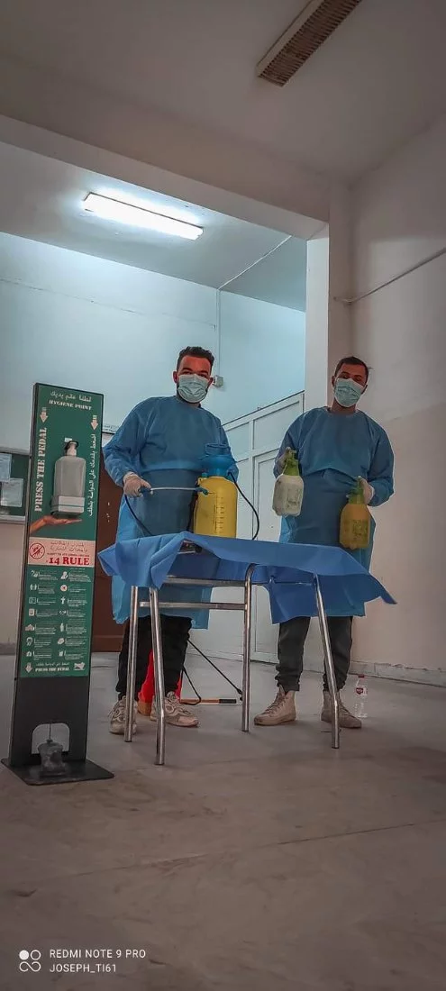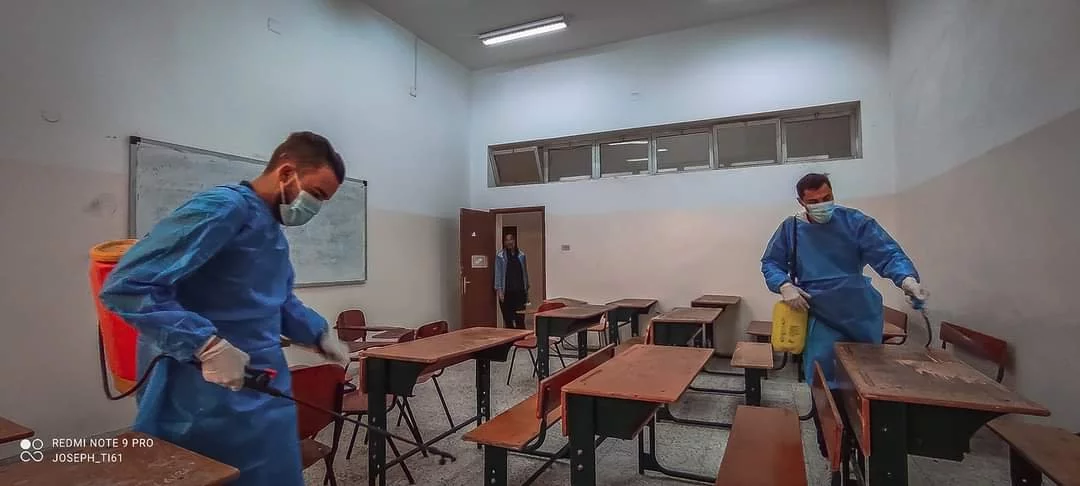 في اطار الاستعداد للامتحانات النهائية قام فريق من اتحاد طلبة الكلية. بالتعاون مع أعضاء من أفراد الحرس . بحملة تعقيم شاملة لمرافق الكلية.