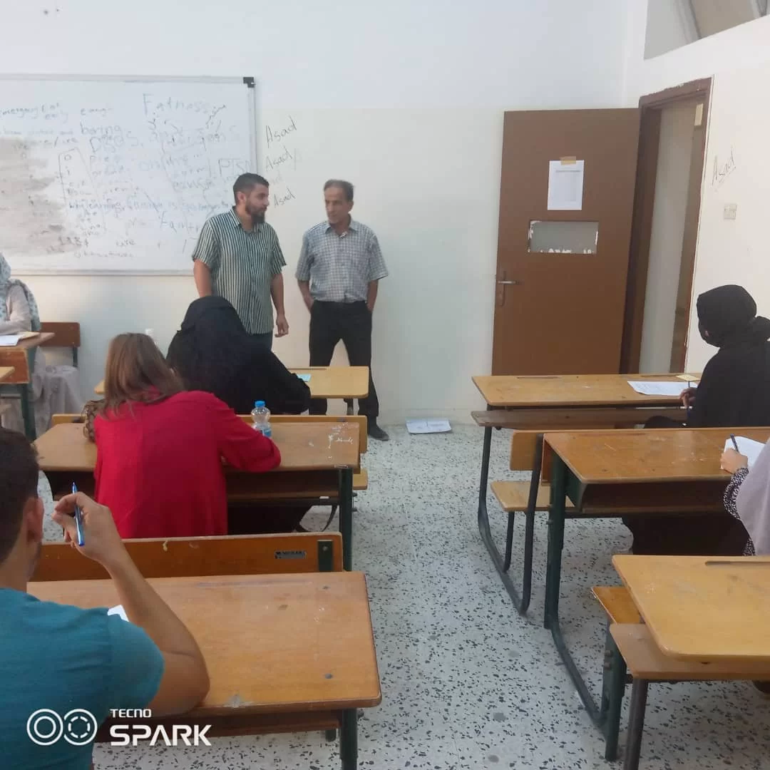 الثلاثاء 5 أكتوبر 2021 - قام عميد كلية اللغات الدكتور نوري عبيريد بعمل جولة تفقدية للأطمئنان على عملية سير الإمتحانات النهائية بمعظم أقسام الكلية، رافقه فيها عدد من رؤساء الأقسام بالكلية، وقد أطلع العميد على الأجراءات الوقائية الإحترازية المتبعة في الكلية عامةً واثناء فترة الإمتحانات خاصةً، وكما اثنى العميد على جهود لجان الدراسة والإمتحانات وأعضاء هيئة التدريس نحو تسيير العملية التعليمية وإجراء الأمتحانات النهائية للفصل الربيعي 2021 على اكمل وجه.