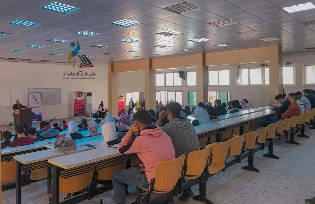 وكذلك قد تم تعريفهم بالكلية ومعالمها وأقسامها العلمية ، وذلك بحضور سيادة عميد الكلية ، والسادة رؤساء الأقسام بالكلية ، قد تم التعريف بالكلية ، وبكل قسم من الأقسام ، وبحضور رئيس اتحاد طلبة جامعة طرابلس ورئيس اتحاد طلبة كلية اللغات .
