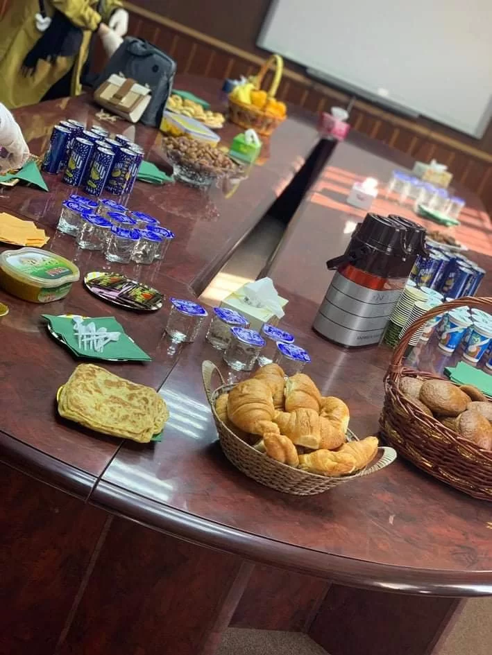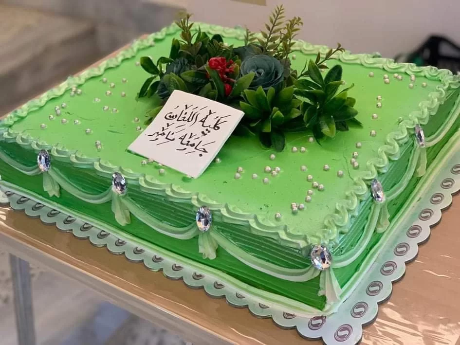 وفي ختام الفعالية أُقيمت إحتفالية مصغرة قُدمت فيها المأكولات والعصائر والأطعمة الخفيفة وقالب كعكة كبير يجسد أحد المسطحات الخضراء بالكلية.
