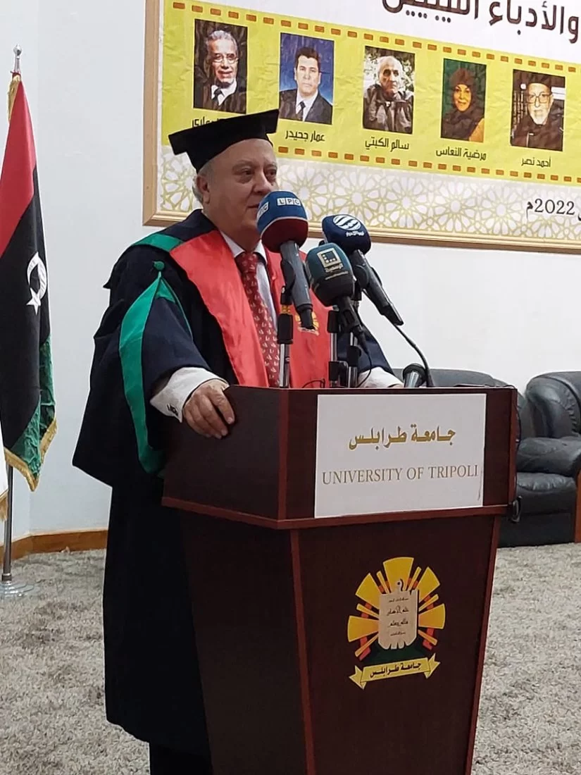 بمبادرة كليتا الآداب والفنون والاعلام - جامعة طرابلس تمنح شهادة الدكتوراه الفخرية لكوكبة من أبرز الكتّاب والأدباء الليبيين، تحت شعار (علماؤنا وأدباؤنا.. تواصل أجيال وتآزر آمال)
