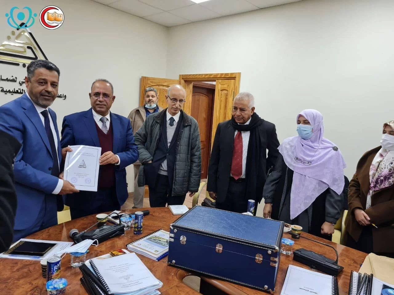 قدمت كلية الطب البشري -جامعة طرابلس- اليوم الإثنين مُستنداتها الخاصة بالتقديم لنيل الاعتماد البرامجي من المركز الوطني لضمان جودة واعتماد المؤسسات التعليمية والتدريبية، حيثُ استقبل المركز وفد كلية الطب البشري مُمثّلا بالسادة/ أ. د. رئيس الجامعة، أ. د. عميد الكلية، أ. د. رئيس اللجنة العليا للاعتماد ال