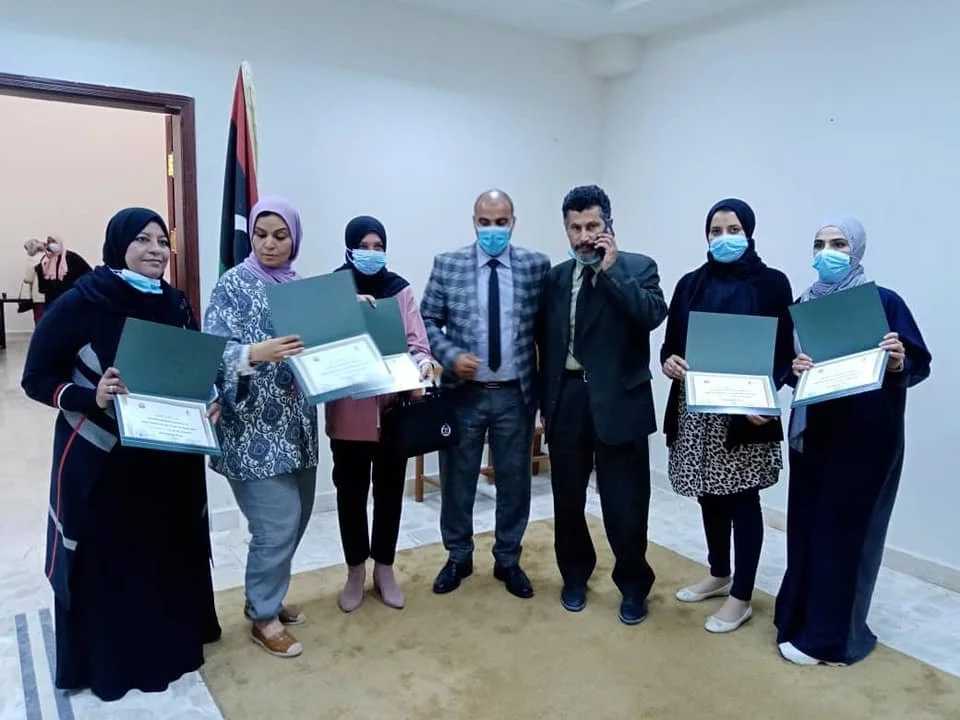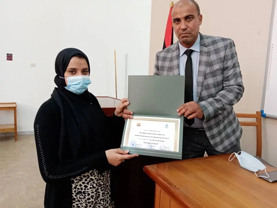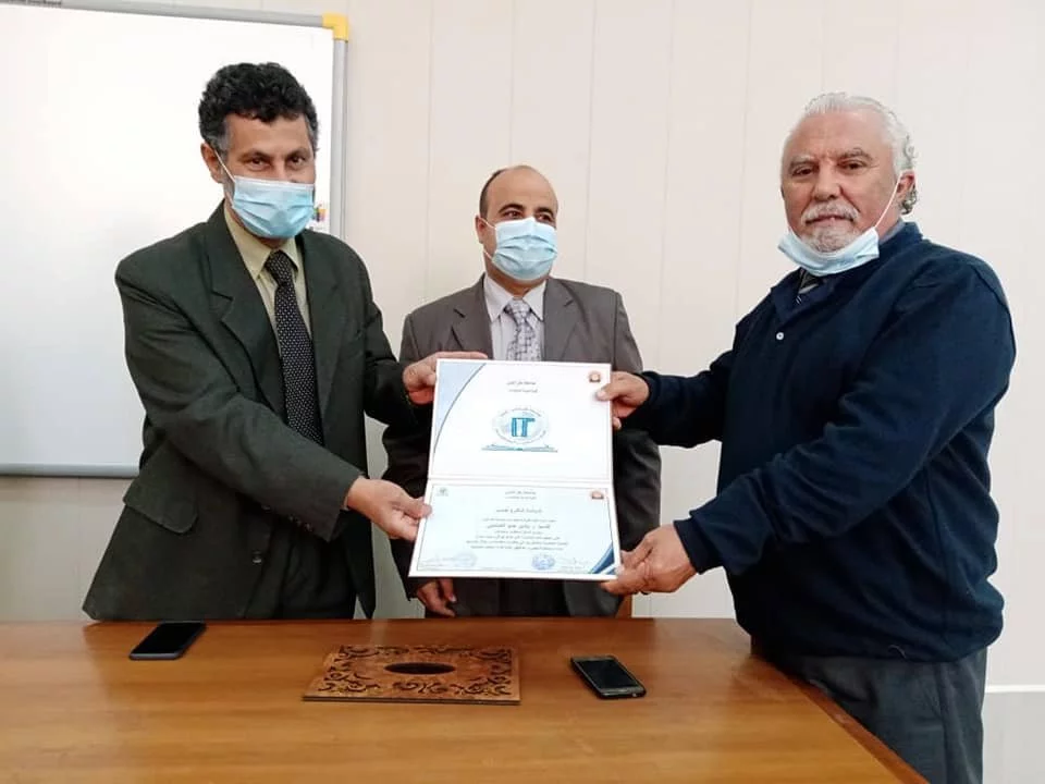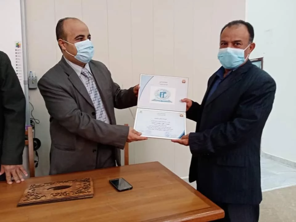 تم اليوم الموافق 2021/04/01م بكلية تقنية المعلومات جامعة طرابلس تكريم موظفين كلية التقنية الطبية وموظفين كلية تقنية المعلومات بعد اختتام الدورة التدريبية في الحاسب الآلي كما انتهزت الفرصه لتكريم الموظفين القدامه والموظفين المتميزين من قبل السيد/ أ.د محمد محمد أنور السيد عميد كلية التقنية الطبية والسيد/ م. اسامة امحمد حويتة مدير الشؤون الادارية والمالية بكلية التقنية الطبية والسيد/ أ. صلاح عياد مدير الشؤون الادارية والمالية بكلية تقنية المعلومات كما تم تكريم السيدة / م.استادة التدريب.من هذا المنبر تتقدم إدارة كلية التقنية الطبية والمتمثلة في السيد/أ.د.عميد الكلية والسيد/ م. مدير الشؤون الادارية والمالية بكلية التقنية الطبية بأسمى آيات الشكر والعرفان الي كلية تقنية المعلومات علي التعاون الكبير بين الكليات وايضاً على حسن المعاملة لموظفي كلية التقنية وتوفير الجو المناسب حتى انتهاء الدورة وأخد كل الإجراءات الاحترازية لمكافحة وباء جائحة كورونا المستجد .المصدر :المكتب الاعلامي بالكلية.
