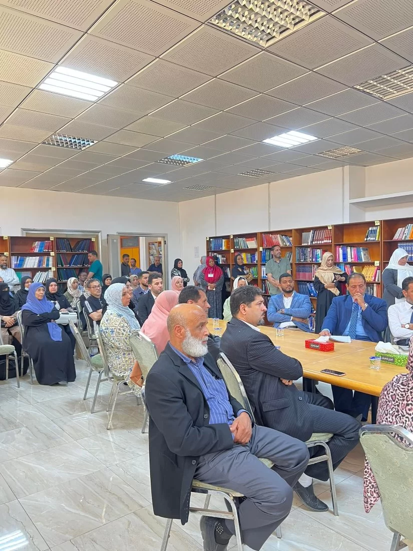 الاجتماع التقابلي الختامي لزيارة فريق التدقيق التابع لمركز ضمان الجودة بحضور ا.د خالد عون رئيس الجامعة وا.د عبدالله عبدالجليل مدير مركز ضمان الجودة و ا.د عبدالمجيد الطيب مدير ادار الاعتماد وا .د سالم الفرد مدير ادارة الضمان ا.د صلاح الباروني وكيل الكليات الطبية وا.د عائشة قشوط عميد الكليه و د .بشير الزرداح مدير مكتب الجودة بالجامعة واعضاء مجلس الكلية واعضاء هيئة التدريس والموظفين بالكلية