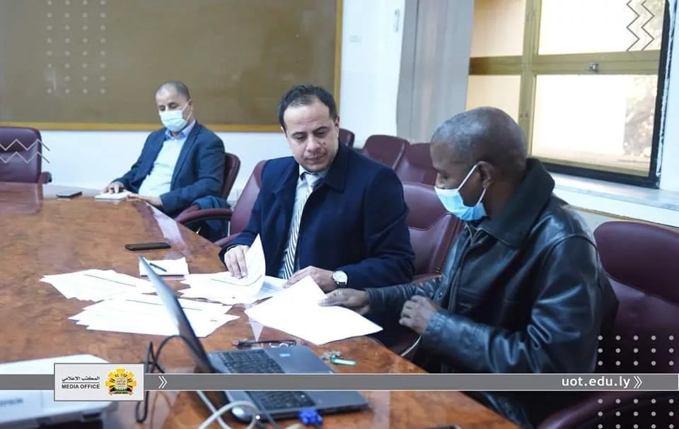 رئيس جامعة طرابلس رقم (1521) الصادر بتاريخ 19 سبتمبر 2019م اجتماعها العادي الثاني لسنة 2021م صباح يوم الإثنين الموافق 25 يناير 2021م بصالة اجتماعات مركز البحوث والاستشارات والتدريب بالجامعة، حيث ترأس الاجتماع مدير مكتب الجودة وتقييم الأداء بالجامعة "د. محمد القريو" رئيس لجنة التصنيف، وبحضور كافة