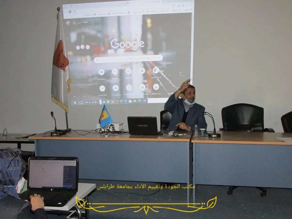 نظم قسم التقويم والتحسين المستمر بمكتب الجودة وتقييم الأداء بجامعة طرابلس بالتنسيق مع مكتب المعلومات والتوثيق بكلية التربية طرابلس يوم الخميس الموافق 28/1/2021 بكلية التربية طرابلس ورشة عمل حول آلية عمل موقع جامعة طرابلس, أعدها وقدمها أ. أسامة القديري رئيس قسم التقويم والتحسين المستمر.