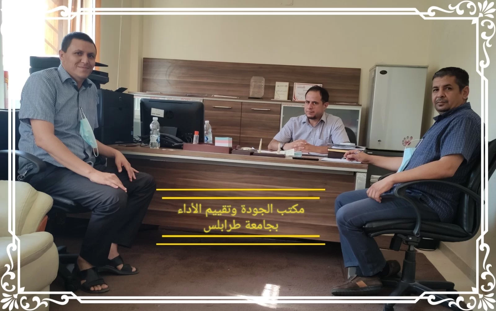 عقد السيد مدير مكتب الجودة وتقييم الأداء بجامعة طرابلس "الدكتور محمد عبدالسلام القريو" اجتماع برؤساء الأقسام بالمكتب والسادة هم: "د. خالد التميمي"، "د. بشير الزرزاح"، و "أ. أسامة القديري".