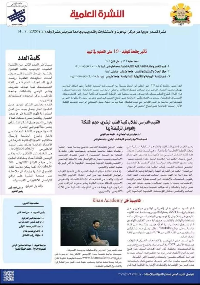 | مركز البحوث والإستشارات والتدريب || العدد الثاني للمجلة العلمية |يمكنكم الآن الإطلاع على العدد الثاني للنشرة العلمية فى موقع المركز rcc.uot.edu.lyخالص الشكر لكافة المشاركين فى النشرة#المكتب_الإعلامي