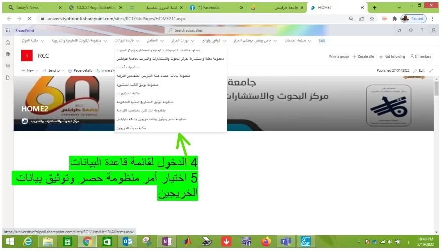 1- الدخول لموقع المركز uot.edu.ly/rcc