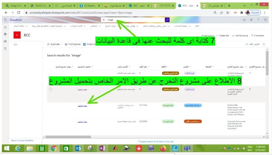 يمكن الوصول لقاعدة بيانات مشاريع التخرج التى يوجد بها حتى تاريخ اليوم 19/2/2022 عدد 1478 مشروع كامل