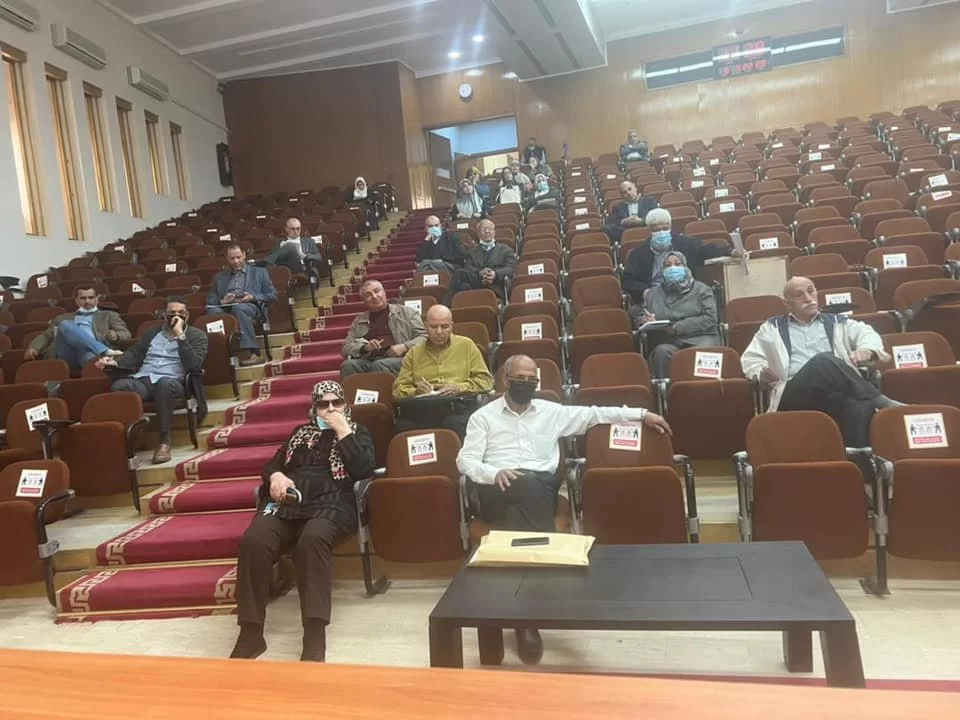 عقد مجلس قسم الكيمياء اجتماعه الثالث (3) لسنة 2022 صباح اليوم الاربعاء الموافق 6/4/2022 عند الساعة العاشرة والنصف بمسرح المرحوم أ.د.منصور مخلوف برئاسه الدكتور يزيد بن شعبان رئيس القسم وبحضور 33 من أعضاء هيئه التدريس بالقسم لمناقشه البنود الاتية:-