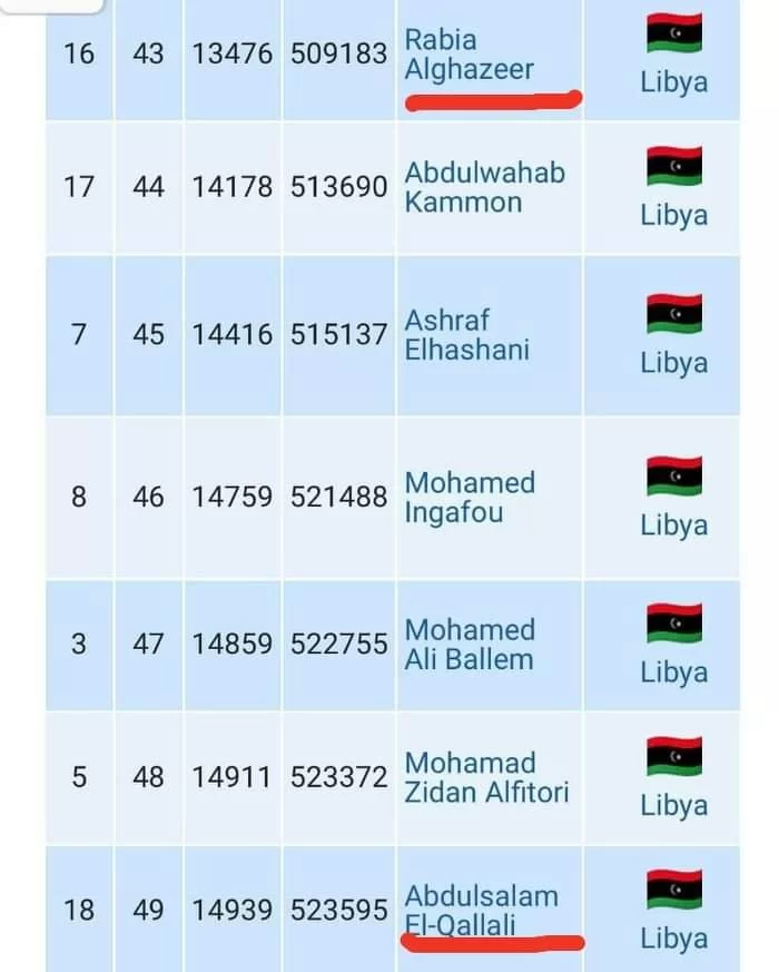 الاستاذه الدكتوره ربيعه عمر الغزير عضو هيئة تدريس بقسم الكيمياء والاستاذ الدكتور عبدالسلام القلالي عضو هيئه التدريس بقسم الرياضيات ضمن نخبة البحاث الليبين حسب AD scientific index2022