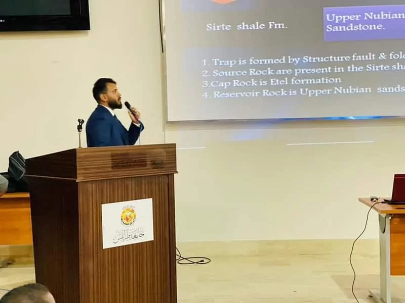 من متطلبات التخرج للحصول على درجه البكالوريوس / جيولوجيا وتحت إشراف الاستاذ الدكتور أسامه أحمد هلال رئيس قسم الجيولوجيا ، تم صباح يوم الاحد الموافق 20/02/2022 م بمسرح المرحوم الاستاذ الدكتور منصور مخلوف بقسم الكيمياء مناقشه مشروع تخرج الطلاب :-حسام محمد المببيمحمد حسام الحجاجيمحمود خالد أبو حنكعنوان مشروع التخرج :- الخصائص البتروفيزيائيه وجودة الخزان النفطي للجزء العلوي من تكوين النوبي الرملي ، ما قبل الكريتاسي العلوي، لحقل ابو الطفل النفطي بحوض سرت الرسوبي