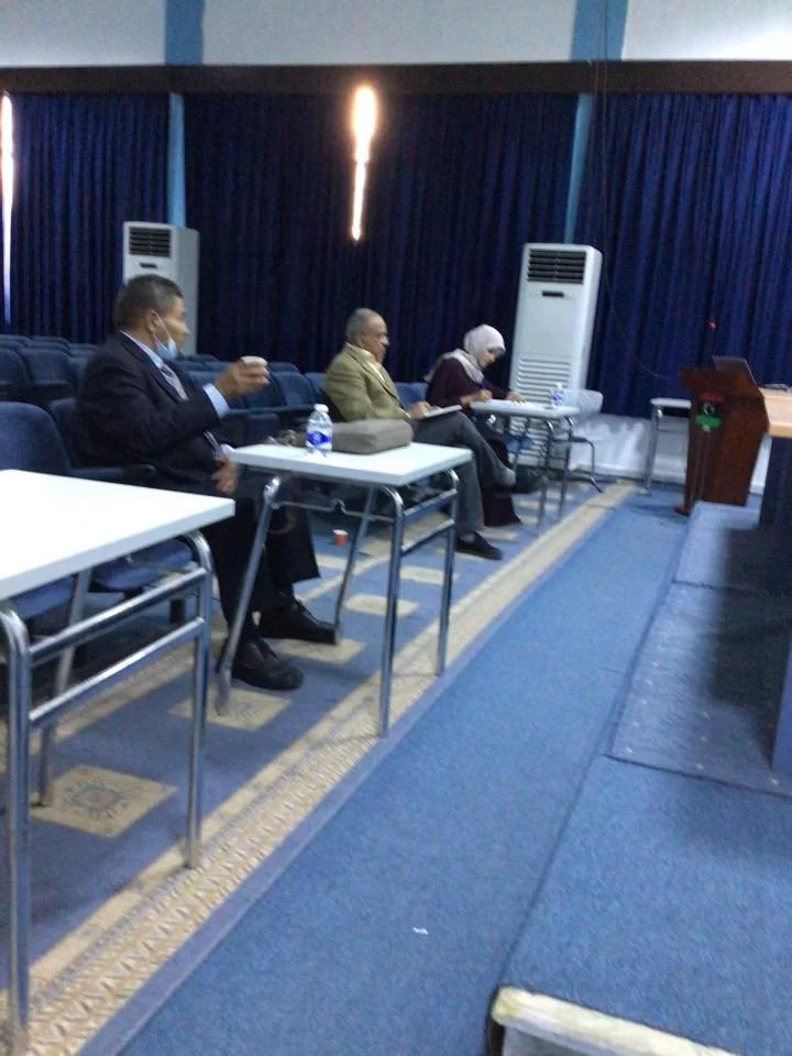 متابعات تم صباح يوم الاثنين الموافق 15/11/2021مناقشه رساله الماجستير بقاعه قسم علم الحيوان للمعيده بقسم علم النبات إسراء خليفه ميلاد المغبوب بعنوان :دراسه مقارنه بين فعاليه الصابون المضاد للبكتيريا والصابون العادي في القضاء على البكتيريا الملوثه للايدي بحضور لجنه المناقشه الخاصه بالرساله في نهايه المناقشه اجازت لجنه المناقشه الرساله ومنحتها تقدير ممتاز