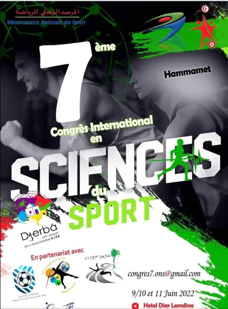 أقام المرصد الوطني للرياضة المؤتمر العلمي الدولي الرياضي السابع تحت إشراف وزارة الرياضة التونسية وبمشاركة العديد من الدول العربية ومنها (ليبيا.. الاردن.. العراق والبلد المنظم تونس). وبعض الدول الأجنبية ومنها فرنسا الولايات المتحدة الامريكية) في الفترة من 9-12/ يونيه 2022.