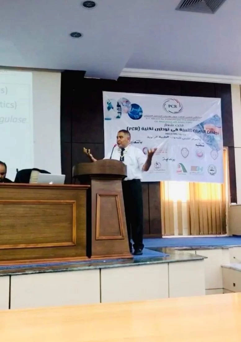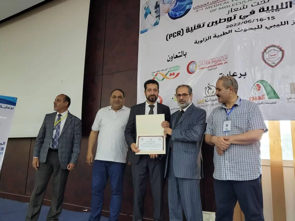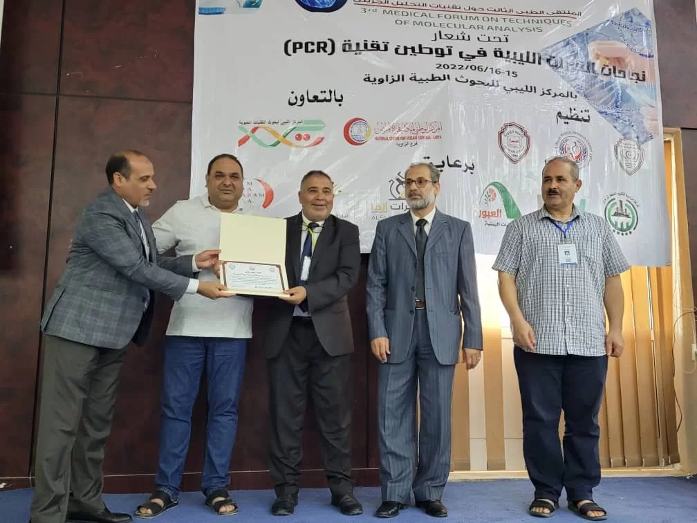 في إطار مساهمة الكلية لخدمة البيئة والمجتمع والتميز والابداع في كافة مجالات العلوم الطبية وتقديم الخدمات والاستشارات العلمية والفنية للجامعة والمجتمع على المستوي المحلي والإقليمي، شارك مجموعة من أعضاء هيئة التدريس مما لديهم خبرة في مجال تقنية التشخيص الجزيئي في الملتقى الطبي الثالث حول تقنيات التحليل الجزيئي الذي أقيم بالمركز الليبي للبحوث الطبية بالزاوية بيومي 15,16 يونيو لسنة 2022 برعاية كل من كلية التقنية الطبية بجامعة الزاوية والمركز الليبي للبحوث الطبية وتعاون كل من مركز مكافحة الامراض والمركز الليبي للتقنيات الحيوية. وقد شارك الأساتذة بالعناوين التالية: