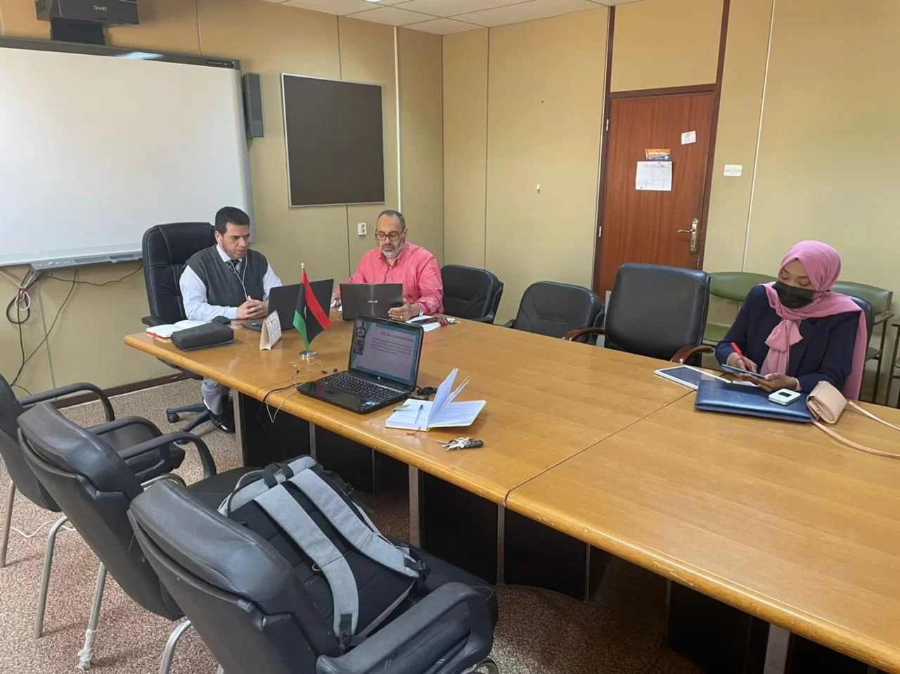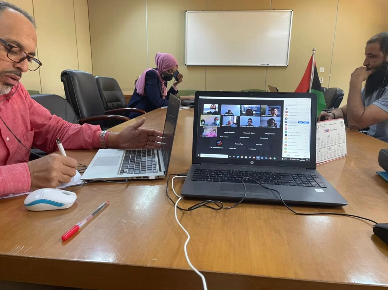 عقد صباح اليوم الثلاثاء الموافق 10.5.2022 بقاعة الإجتماعات بكلية الطب البيطري بجامعة طرابلس الإجتماع الأول بين الفريق البحثي المشكل من مجموعة من أعضاء هيئة التدريس بقسم أمراض الدواجن والأسماك وقسم الأحياء الدقيقة والطفيليات مع فريق من الخبراء من مختلف التخصصات من إيطاليا و المختبر المرجعي بمدينة تيرامو الإيطالية وذلك عبر إستخدام تقنية الزووم.